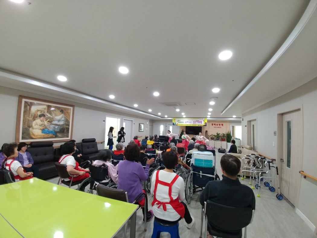 고전무용 공연 및 여성합창단 분들이 오셔서어르신들과 함께 트로트도 부르시고 가곡도 불러주시고 즐거운 시간이였습니다...