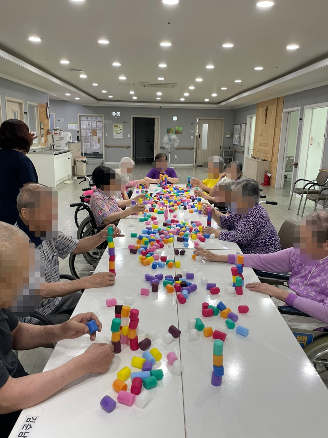 실버체조 관련링크 이전글 다음글 목록 본문 최대한 높게 높게 10개 이상 쌓아보나, 게임도 하고 한번씩 지진이다 하면서 책상도 흔들면서 누가 튼튼하게 쌓았는지 게임하면서손가락 소근육 운동 및 인지향상 운동을 해보았습니다. 이전글 다음글 목록