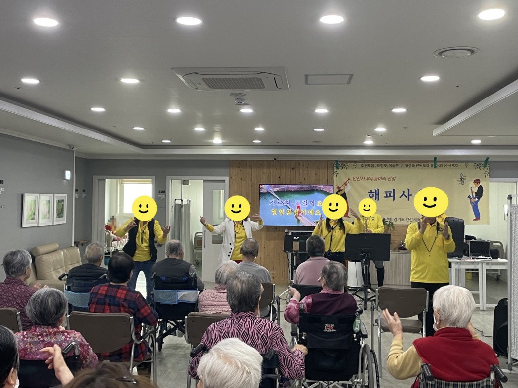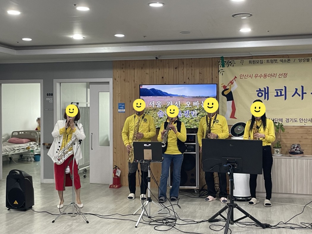 트럼펫공연 관련링크 이전글 다음글 목록 본문 2023년 2월 12일 안산 해피사운드 트럼펫연주 동아리에서 동백요양원에 방문해 주셨습니다. 멋진 트럼펫 공연과 노래 그리고 어르신들과 함께 율동하고 춤을 추면서 즐거운 시간을 가졌습니다!!코로나 전에는 봉사자분들이 오셔서 다양한 공연들을 해주셨는데 코로나기간 동안 방문을 못하시다가이번에 정말 너무 오랜만에 방문해주셔서 트럼펫공연을 해주시니 어르신들이 색다르다고 너무 좋아하셨습니다. 이전글 다음글 목록