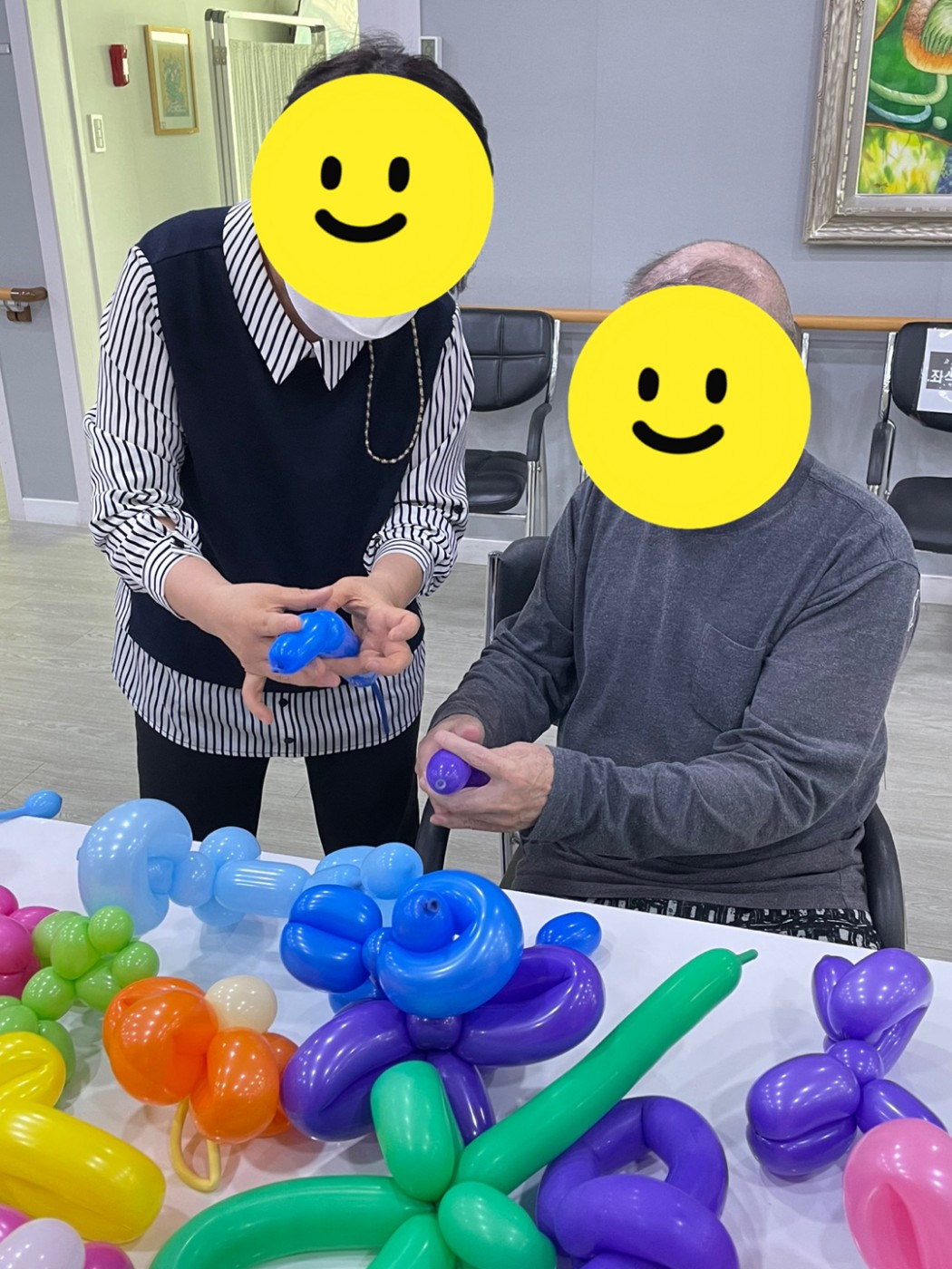 강아지풍선만들기 관련링크 이전글 다음글 목록 본문 사회복지사님이 풍선으로 강아지도 만들고 나비와 곰을 만드니 너무 신기해 하셨어요몇몇 어르신은 직접 만들어 보고 싶어 하셔서 강아지 만드는 법을 알려 드리니 여러개 만들어서 같은 방 어르신들에게 선물도 했습니다.왕관도 만들고 꽃팔지도 만들어서 이쁘게 치장을 하며 즐거운 풍선놀이 시간을 가졌습니다. 어르신들 모두 강아지 및 꽃 풍선 하나 이상씩 가져가 방을 장식하기도 했어요~ 이전글 다음글 목록