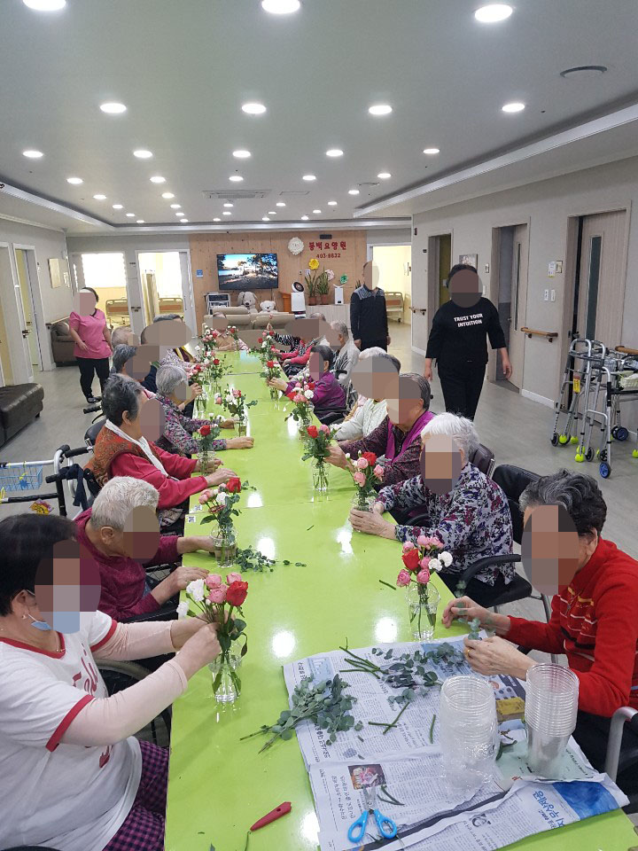 4월 꽃꽂이 프로그램 관련링크 이전글 다음글 목록 본문 봄이 왔지만 코로나19로 인해 외부와 단절되어 생활하시는 어르신들을 위해 봄을 느끼시라고 꽃꽂이 프로그램을 진행하였습니다.어르신들이 꽃을 보니 봄이 온것 같다고 너무 너무 좋아하셨습니다. 각자 방에 가져다 놓으시고 하루 종일 꽃 이야기를 하면서 행복해 하셨습니다. 이전글 다음글 목록