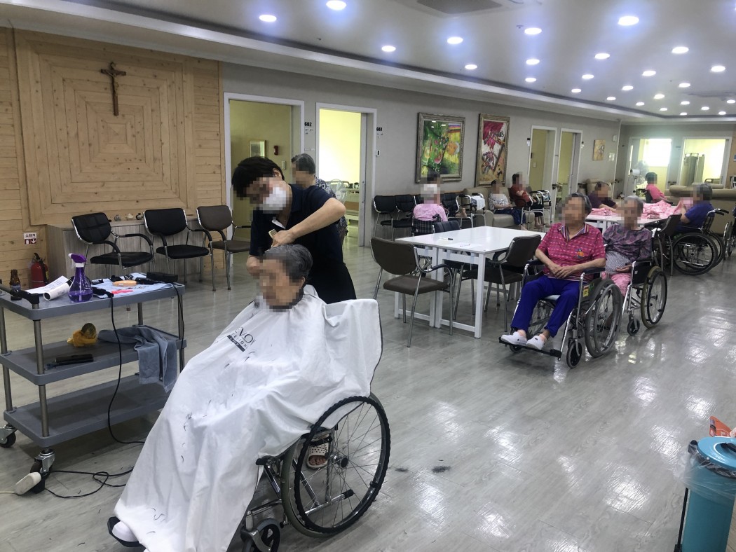 7월 2일 미용봉사 관련링크 이전글 다음글 목록 본문 코로나19로 인해 미용 봉사자 님이 한동안 못오시다가 어르신들이 너무 너무 미용을 하고 싶다고 하시어 철저한 방역 후 봉사자님을 모셔왔습니다. 예뻐지신다는 마음에 기다리는 시간도 지루하지 않고 두근두근 ㅎㅎ 깔끔해지시는 어르신들을 보니 저희도 너무 기분이 좋았습니다. 이전글 다음글 목록