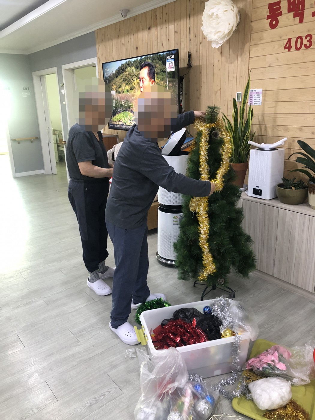 트리꾸미기 관련링크 이전글 다음글 목록 본문 어르신들이 돌아가면서 하나 하나 볼도 달고 선물 상자도 달아서 만든 크리스마스 트리입니다!저희 요양원도 점점 크리스마스가 다가 오고 있습니다~! 이전글 다음글 목록