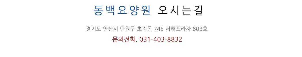 상호명 : 동백요양원 | 대표자 : 김희정 | 주소 : 경기도 안산시 단원구 초지동 745 서해프라자 603호 | 대표전화 : 031-403-8832 | 팩스번호 : 031) 403-8834 | 사업자번호 : 801-99-01916